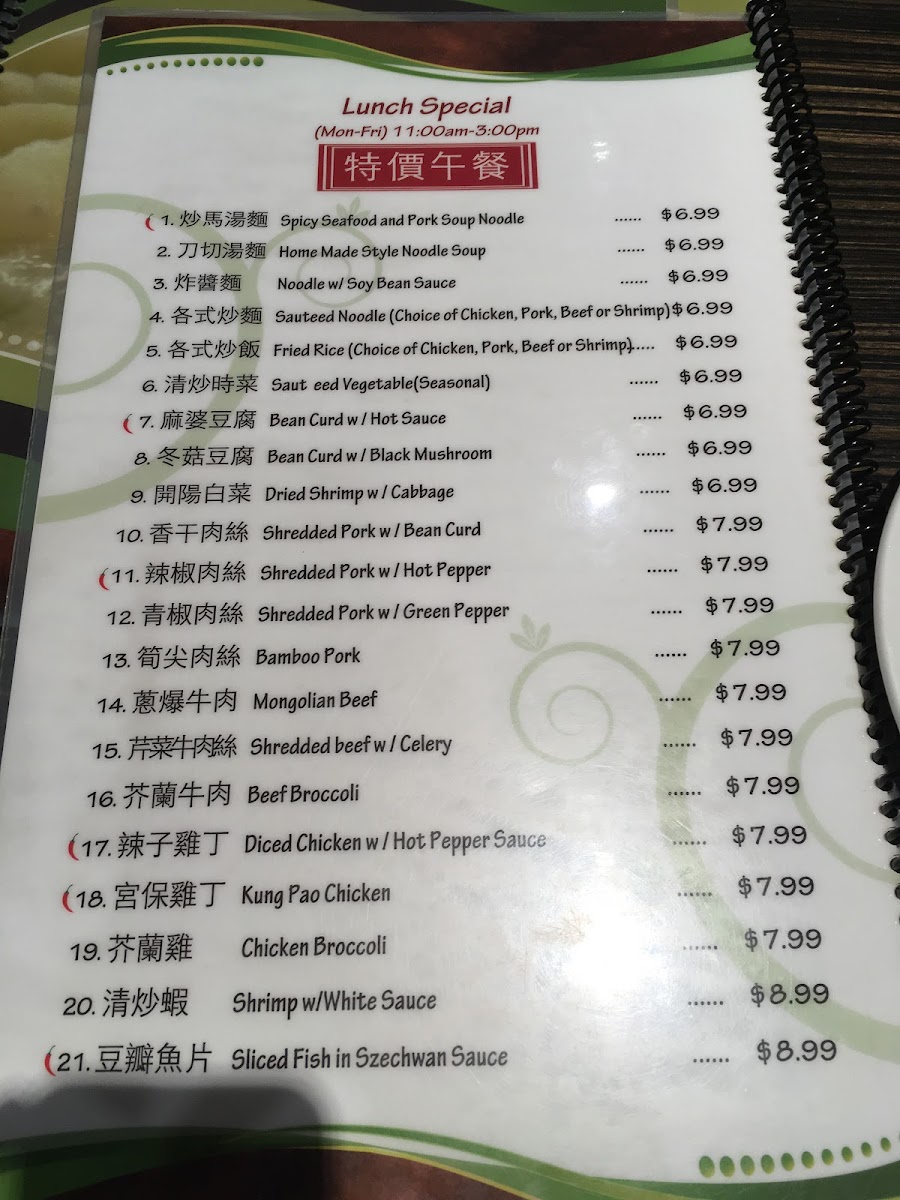 Overall, the menu provides a comprehensive selection of traditional Chinese dishes, emphasizing dumplings and noodle-based meals, suitable for lunch or dinner. Customers can expect straightforward ordering options for casual dining occasions.