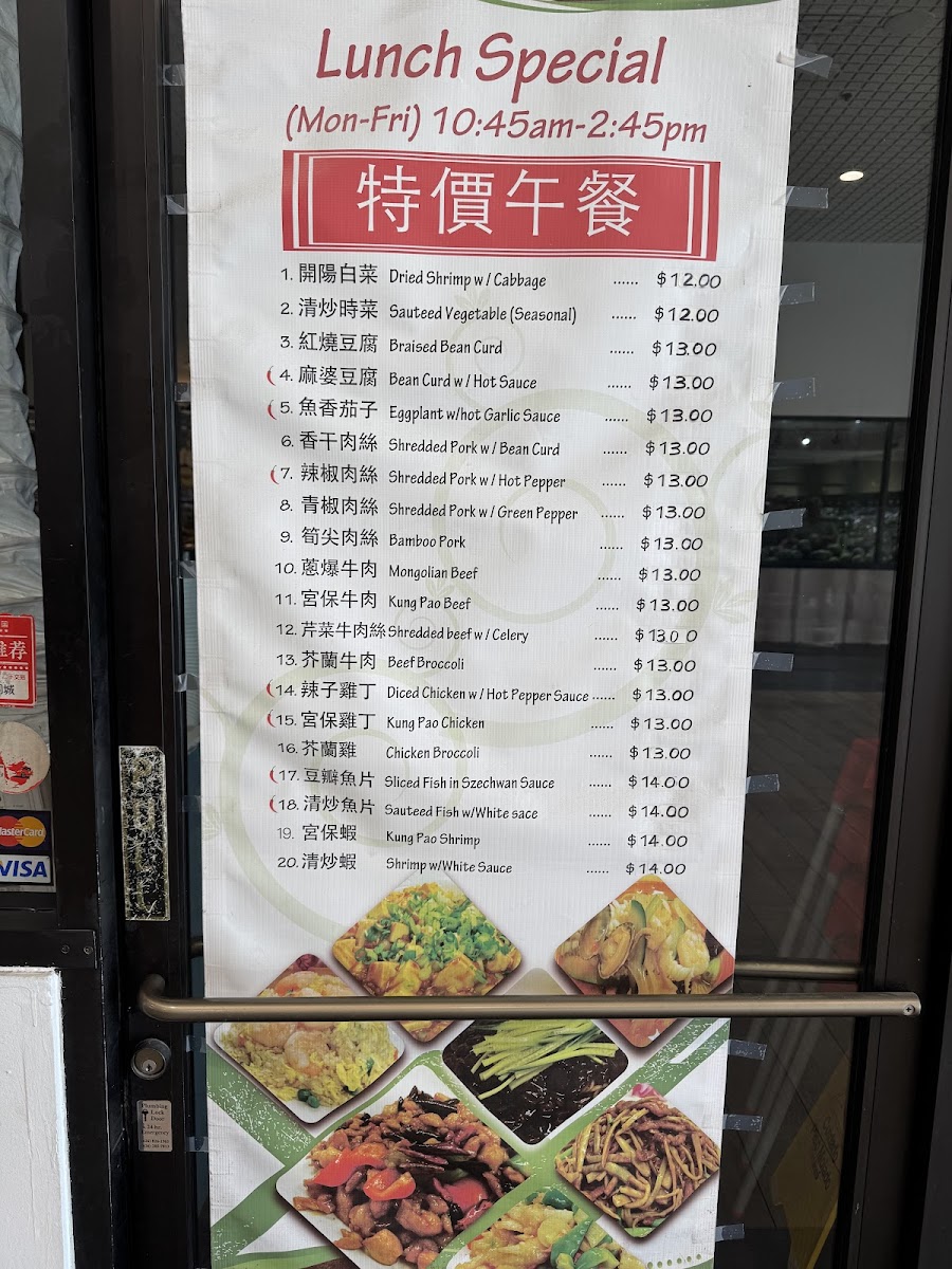 Additional menu highlights include popular appetizers and side dishes like Pot Sticker Dumplings, Green Onion Pancake, Hot and Sour Soup, Mapo Doufu, and Cucumber Salad. The variety accommodates both light meals and more substantial dining options.