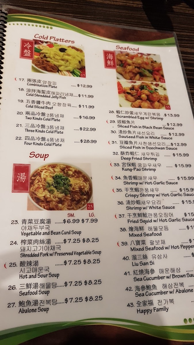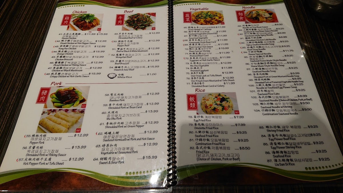 - Rice: The rice selections feature fried rice variants such as Egg Fried Rice, Seafood Fried Rice, and Combination Fried Rice, as well as specialty dishes like Egg Flower Beef Rice and Liu San Si Rice.